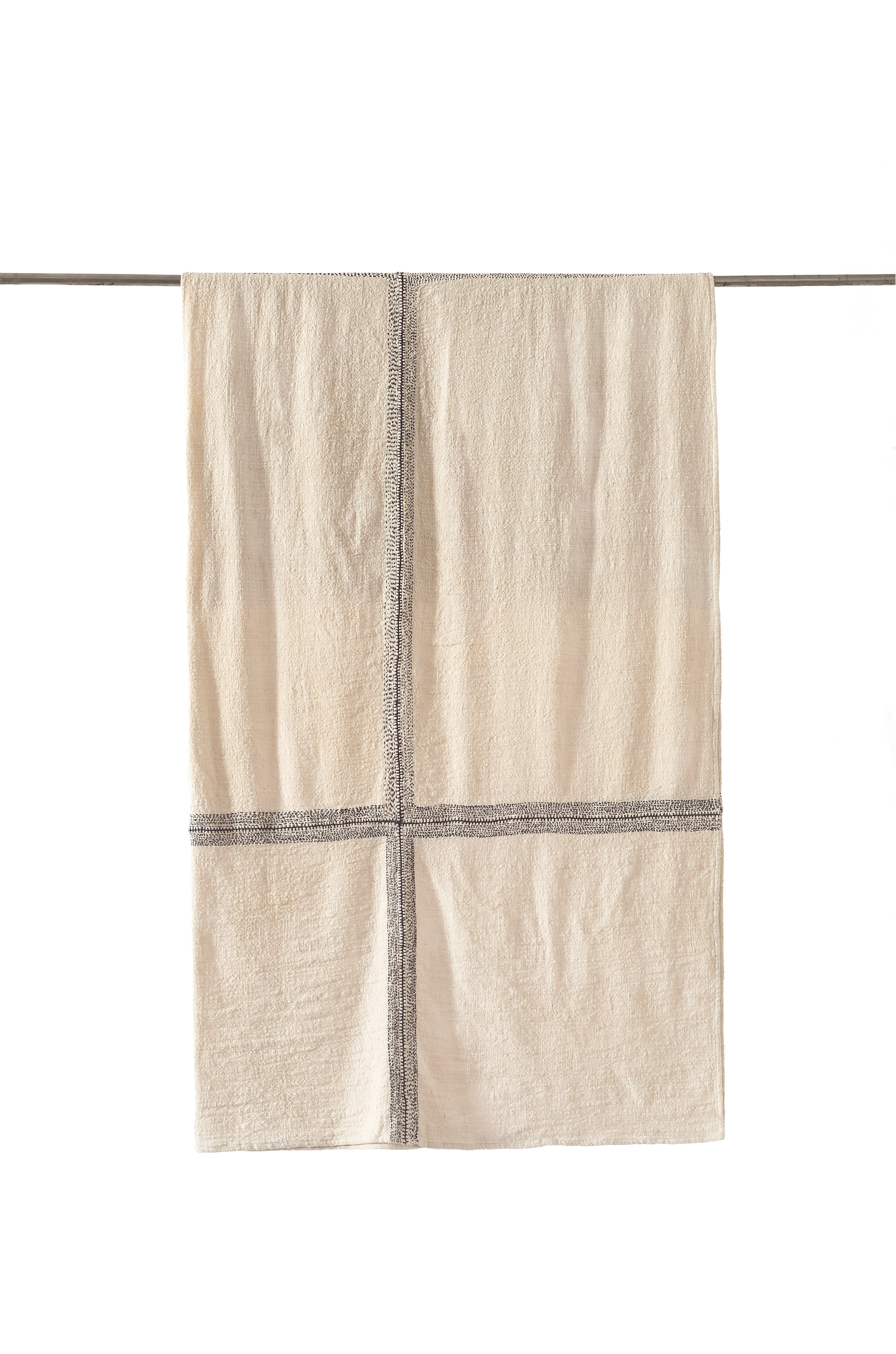 Delicate kantha embroidered lines running across the length, and striking charcoal threads against a natural backdrop makes for the Frost blanket. The blanket is handwashed to further achieve a soft and relaxed textural appeal. Each piece varies slightly to depict the nature of hand crafted design