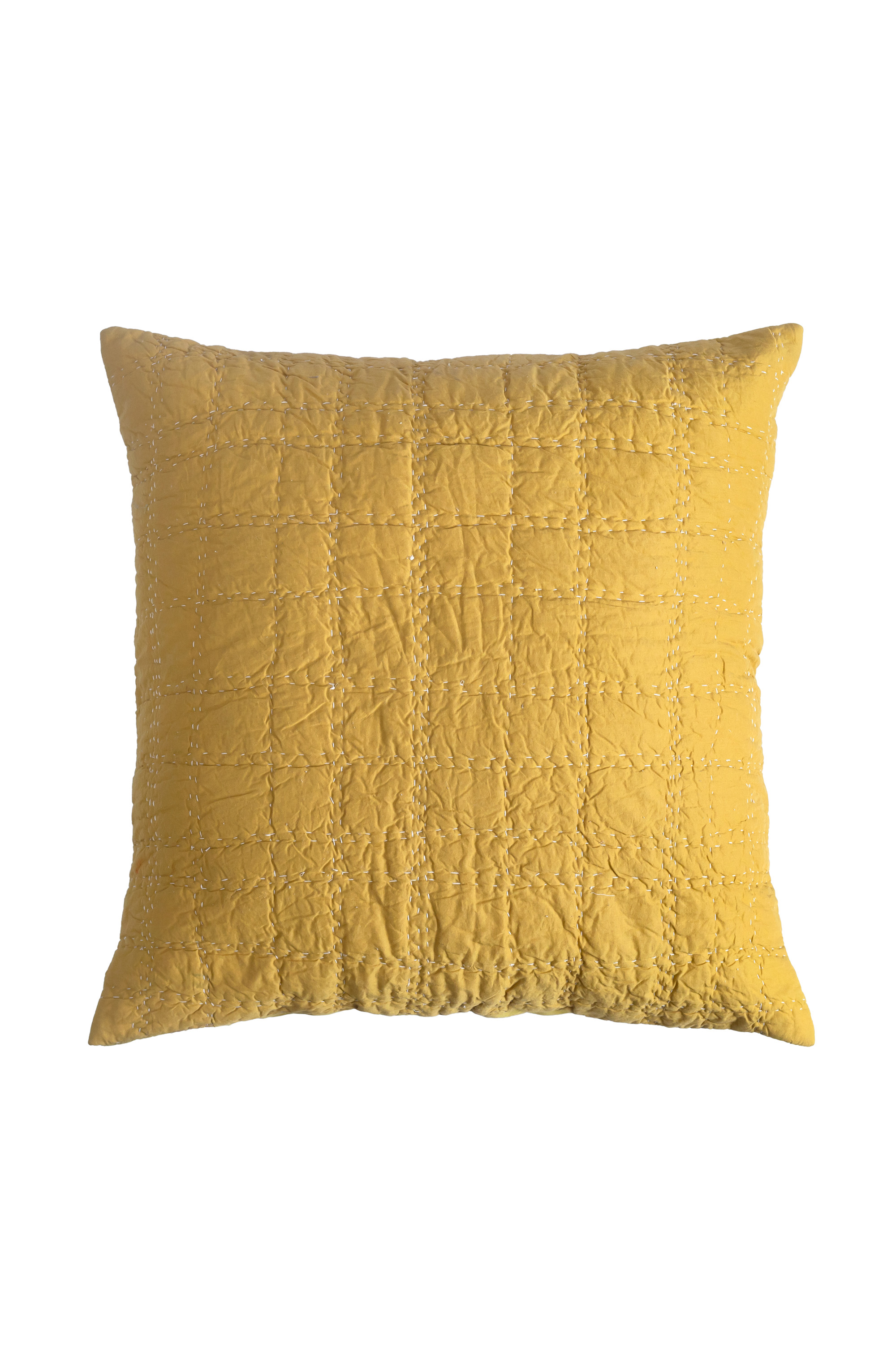 Crafted with fine cotton is our signature Check Box sham. With hand quilting all throughout using a distinct pop of colour to create striking checkered pattern, it is heavily washed for the textural richness. This sham is mid weighted with easy care making them perfect for year-round use. Each piece is filled with 100% cotton and is available in natural, indigo, misted rose, sepia and citrus.
