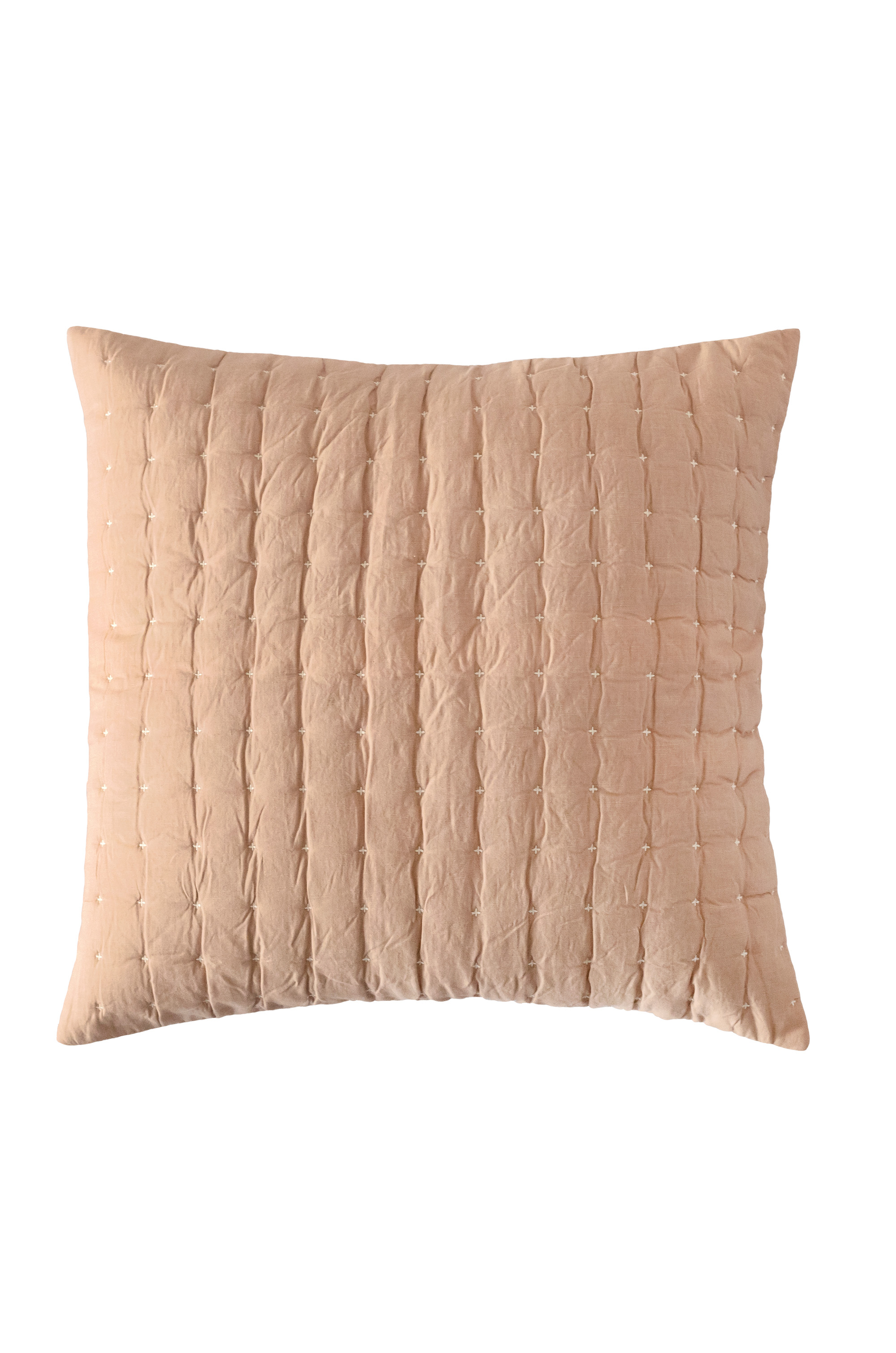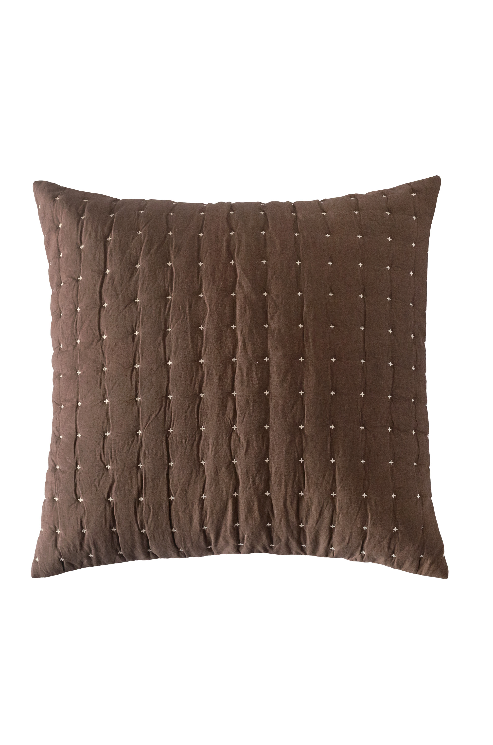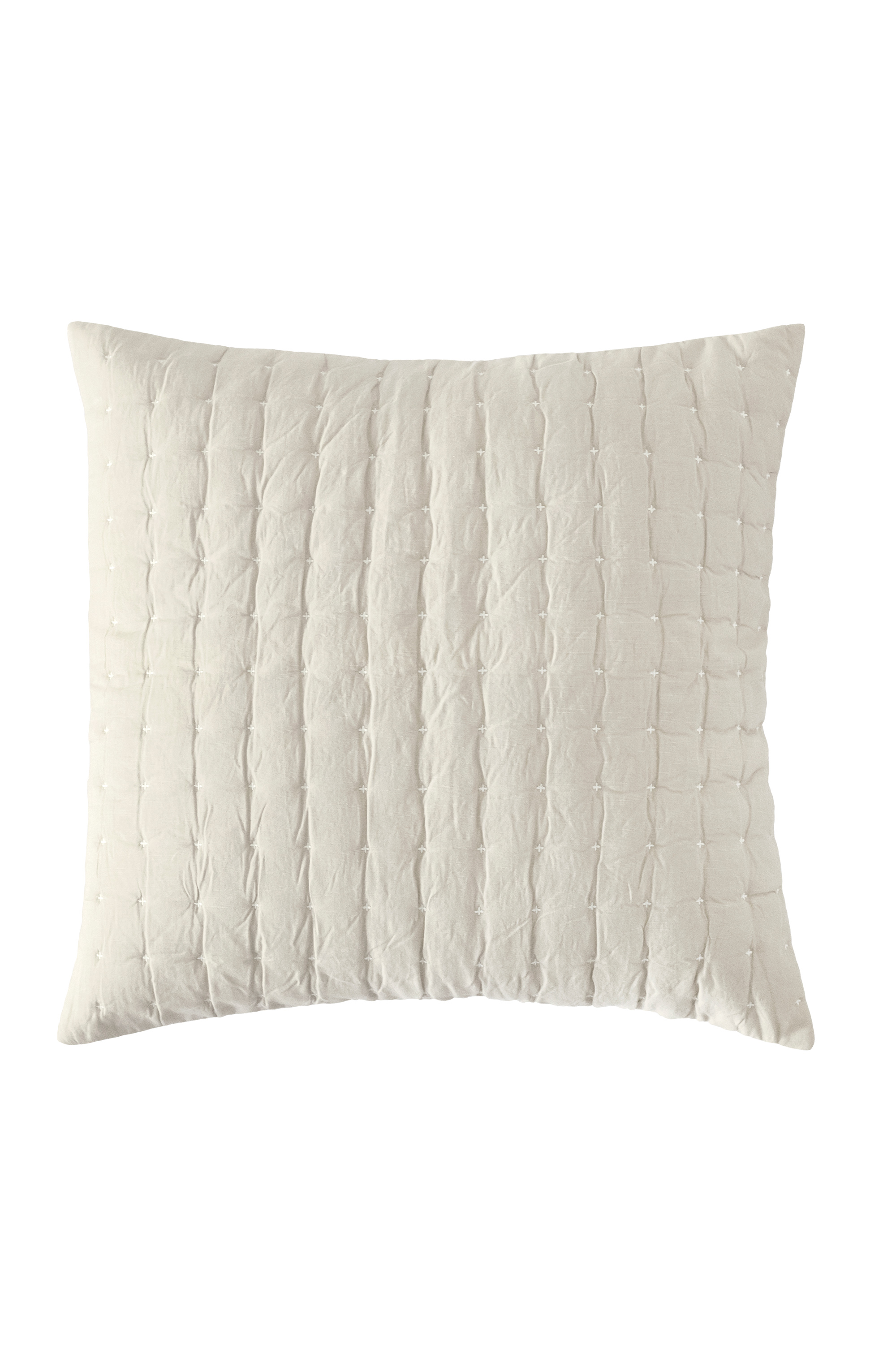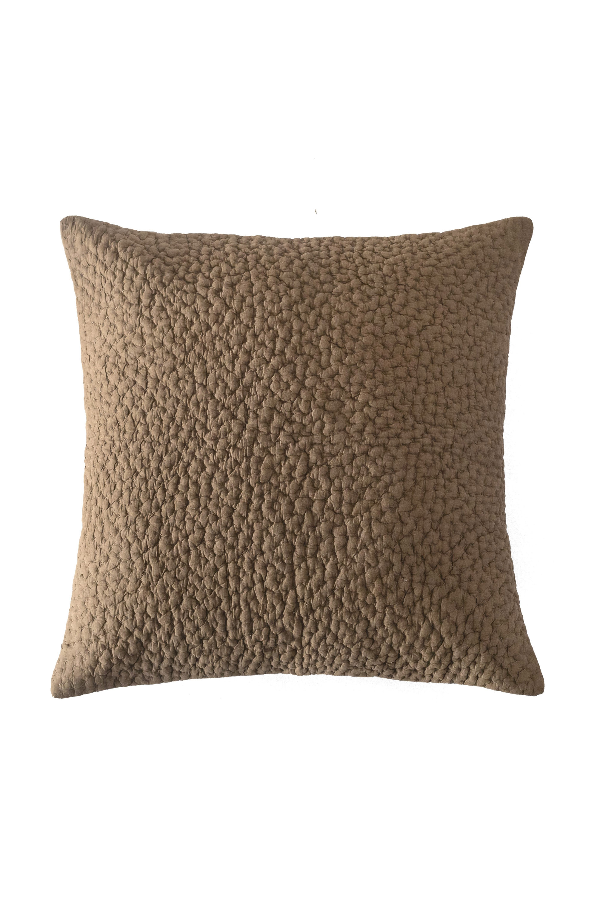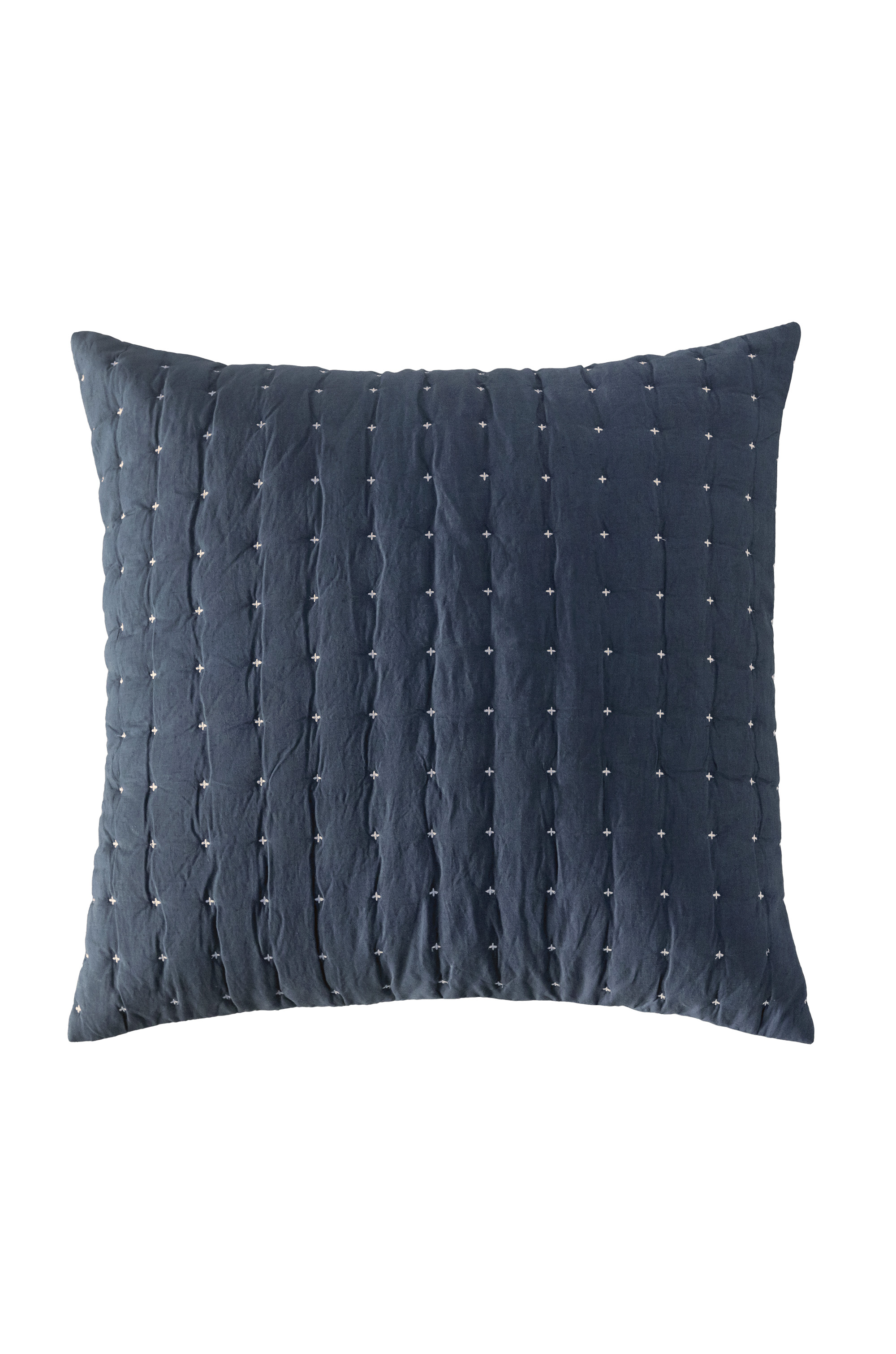 Crafted with fine cotton is the Dune sham. With hand quilting all throughout in a criss-cross style, it is heavily washed for textural richness. This sham is mid weighted and its easy care makes them perfect for year round use. Each piece is filled with 100% cotton and is available in natural, indigo and mocha