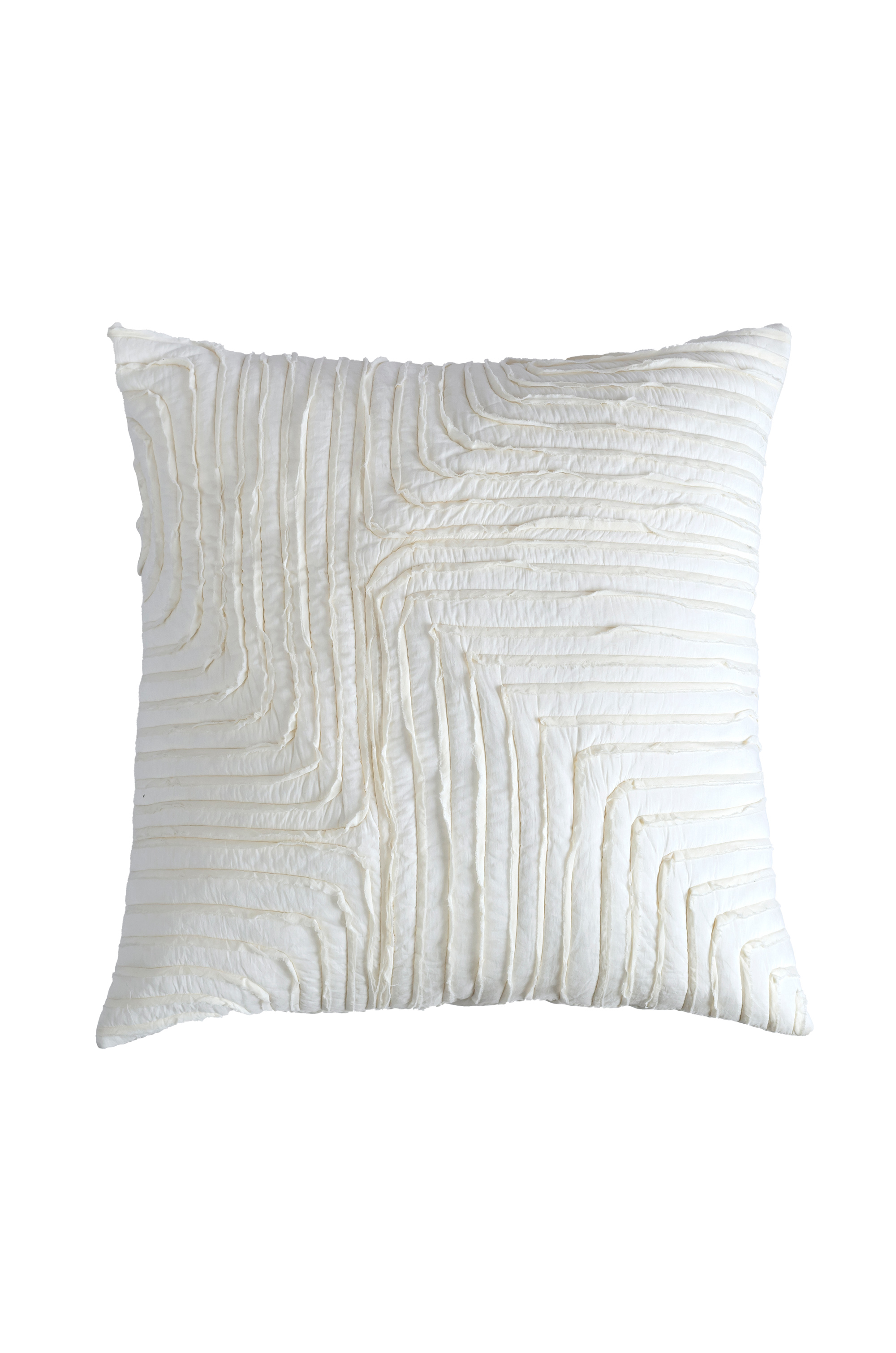 The beautiful Pearl cushion crafted from 100% cotton is created with an intricate stitching process. The overall pattern of contemporarised motifs on a natural background with natural strips of frayed fabric gives the design a graceful and raw look. Each cushion varies slightly to reflect human touch of design