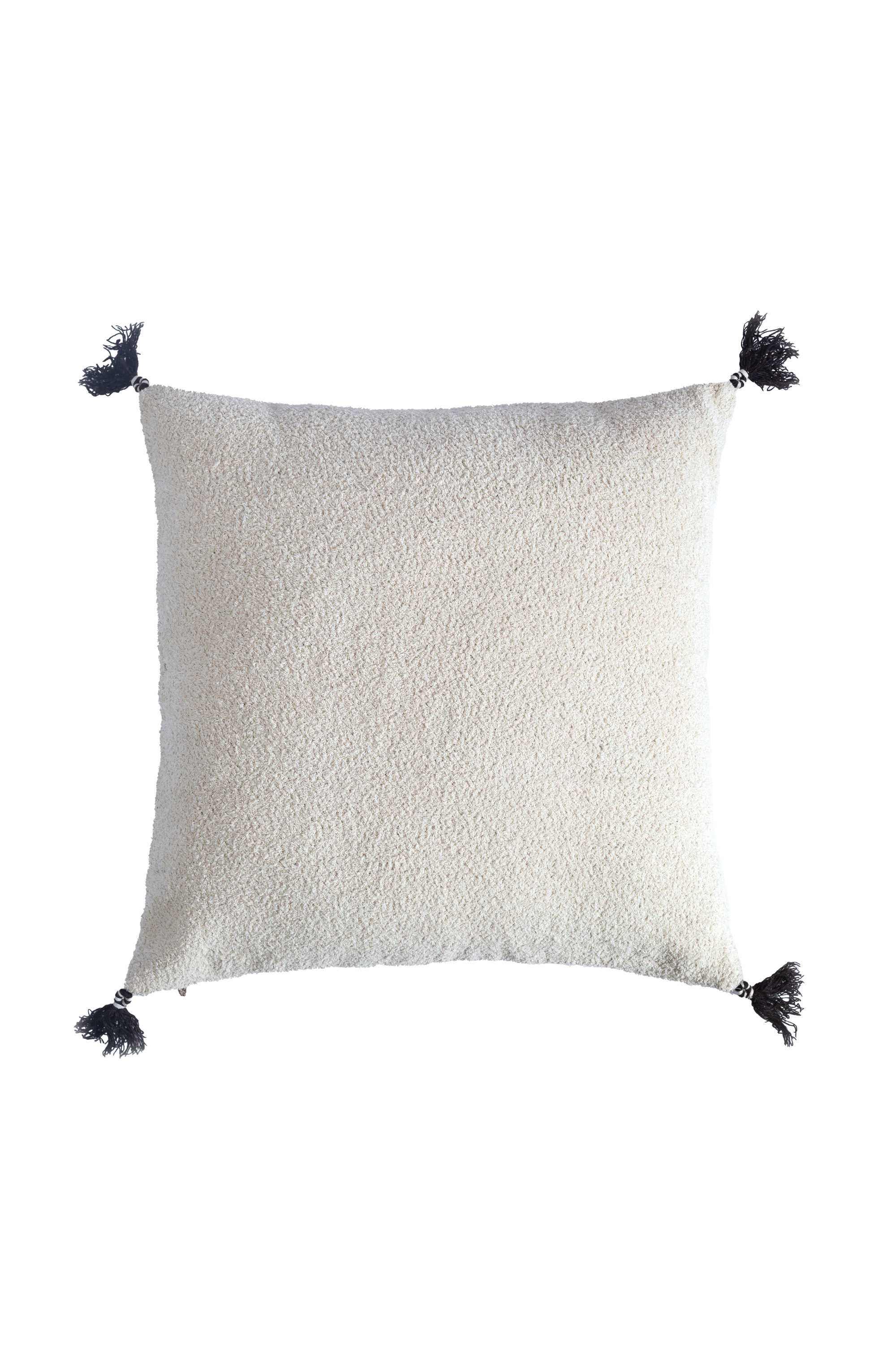 Brilliantly soft and luxurious, the Renee cushion is crafted from 100% cotton boucle. Its unique construction makes it a perfect addition to modern décor. The further addition of beautiful wool tassels on each corner gives it a raw appearance. It is handwashed to further achieve a soft and relaxed textural appeal